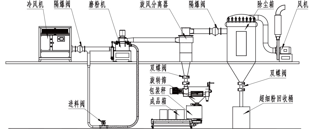 一旦发生粉尘爆炸,ACM-PSR系列抗爆炸压力冲击型微粉粉碎系统立即自动切断电源